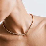 Añade un toque de lujo con la Gargantilla Rivière, bañada en oro de 14k. Esta pieza exquisita presenta una línea continua de piedras brillantes, creando un efecto deslumbrante y elegante. Perfecta para cualquier ocasión, ofrece un toque clásico y glamuroso para elevar tu estilo.