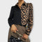 Actualiza tu guardarropa con esta blusa llamativa que combina el clásico negro con un audaz estampado de leopardo.